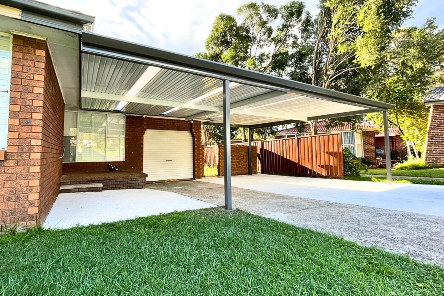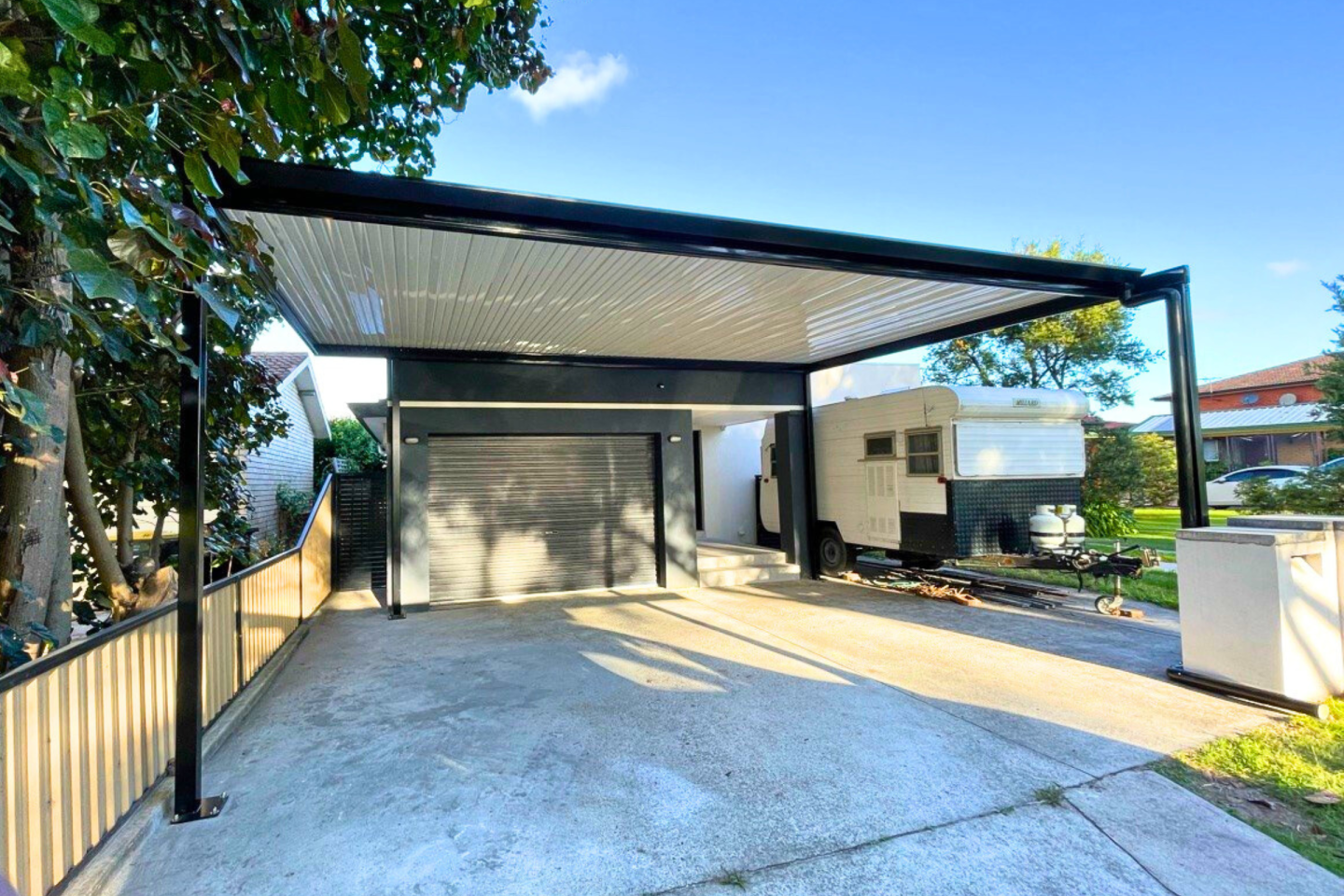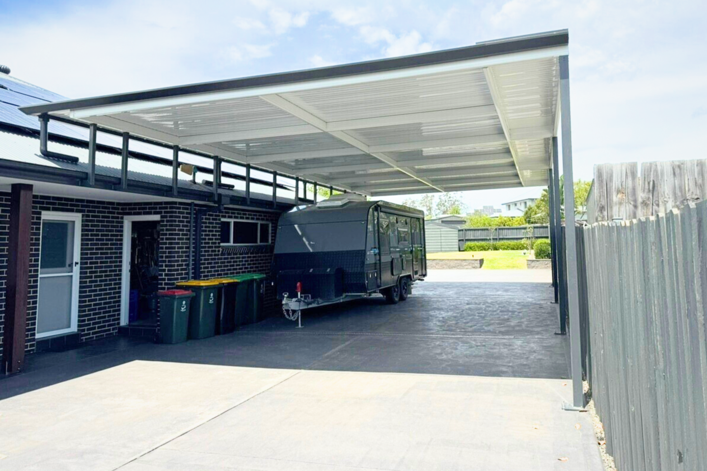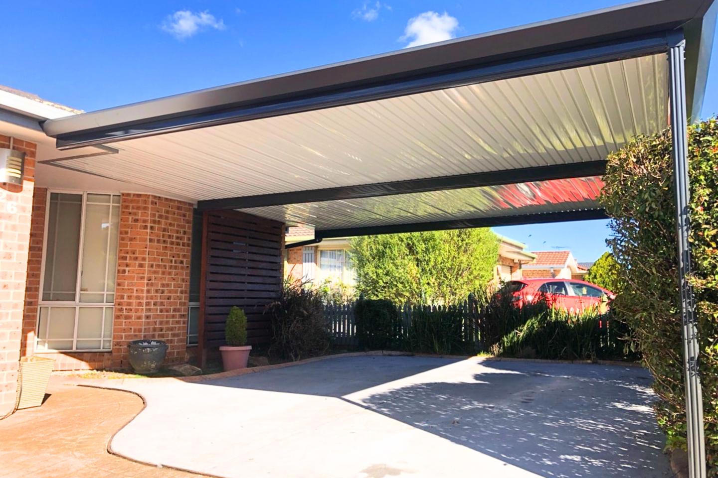 A modern carport serves more than just a vehicle storage function. At Opal, we understand the important dual role that car parking spaces play in the architectural design of homes. While providing protection for cars and possessions, carports also elevate the look and worth of your property. Our tailor-made carports come in a variety of sizes, from single-vehicle shelters to large multi-vehicle structures, boat ports, and caravan ports. Choose from a range of colours and roof styles to match your personal taste.