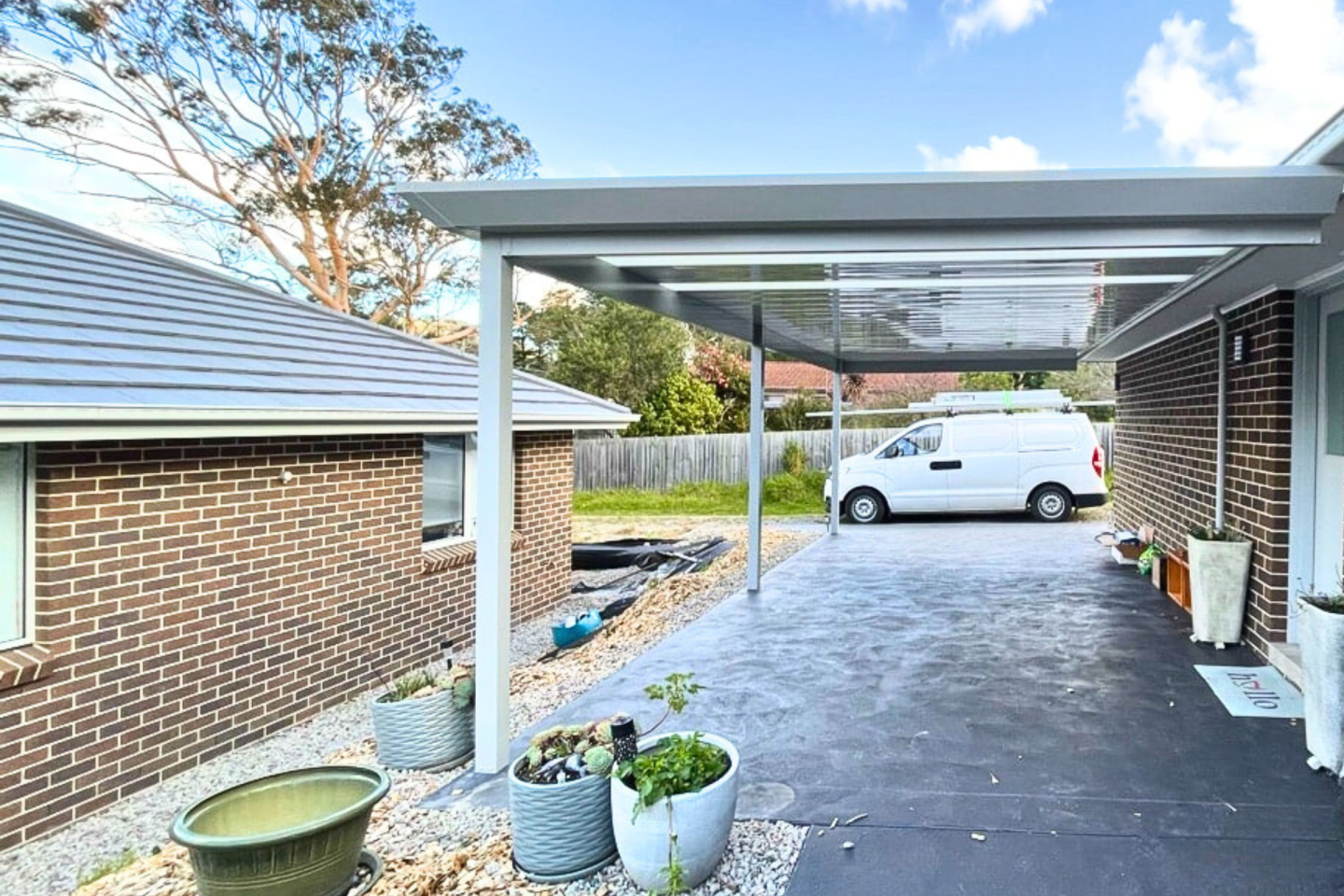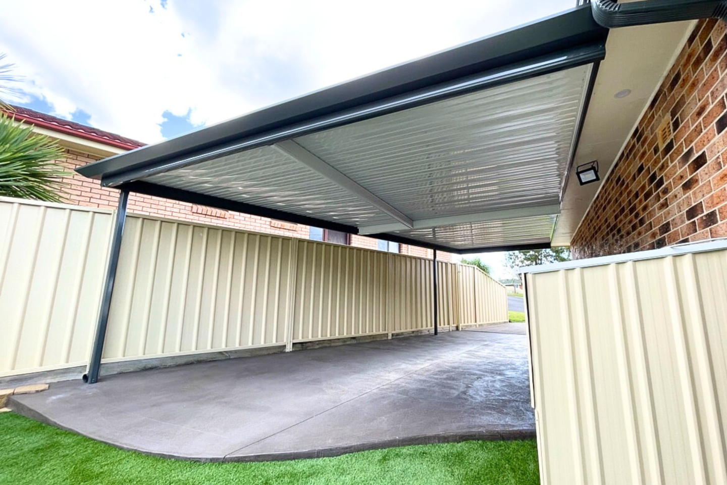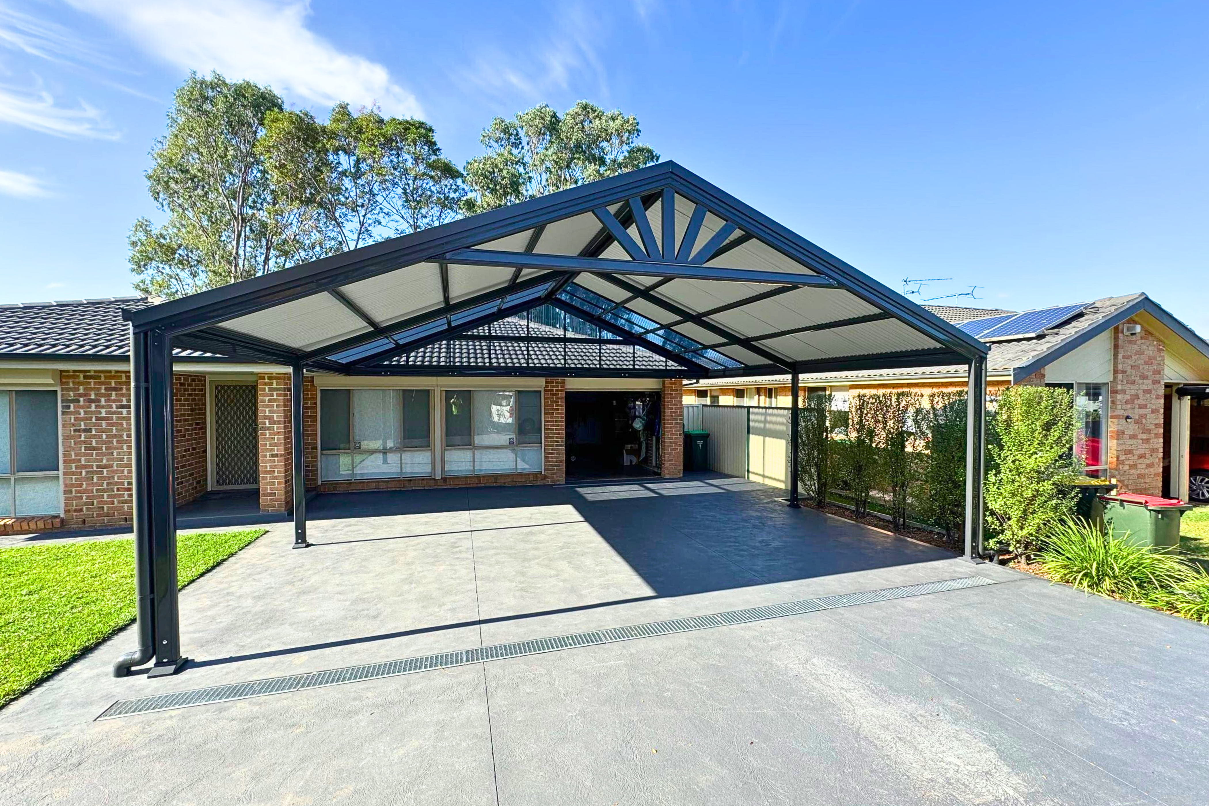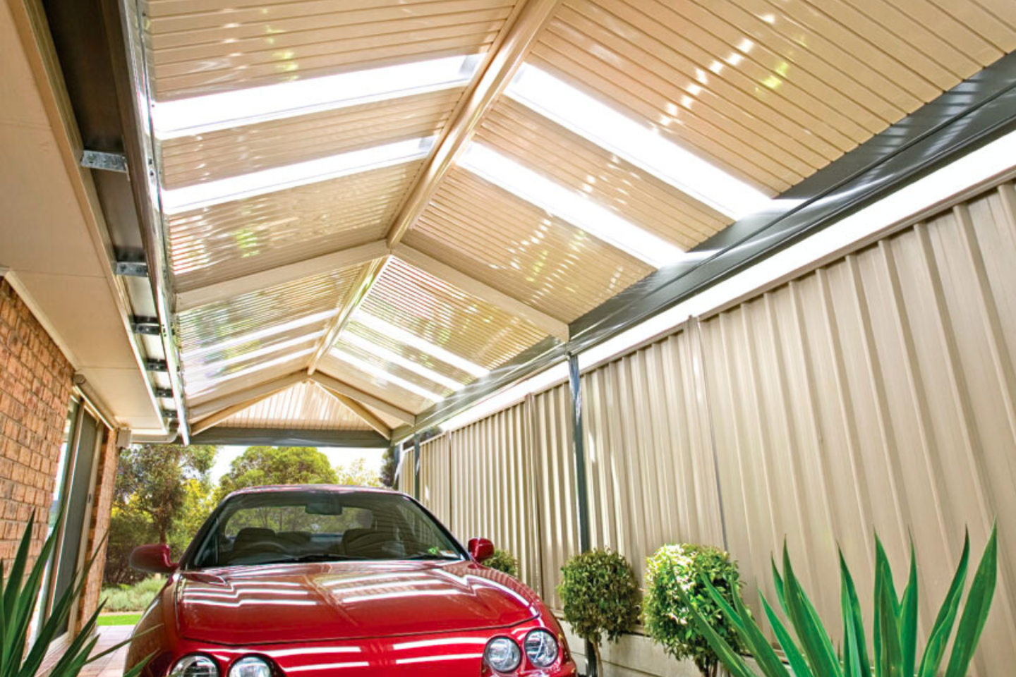 A modern carport serves more than just a vehicle storage function. At Opal, we understand the important dual role that car parking spaces play in the architectural design of homes. While providing protection for cars and possessions, carports also elevate the look and worth of your property. Our tailor-made carports come in a variety of sizes, from single-vehicle shelters to large multi-vehicle structures, boat ports, and caravan ports. Choose from a range of colours and roof styles to match your personal taste.