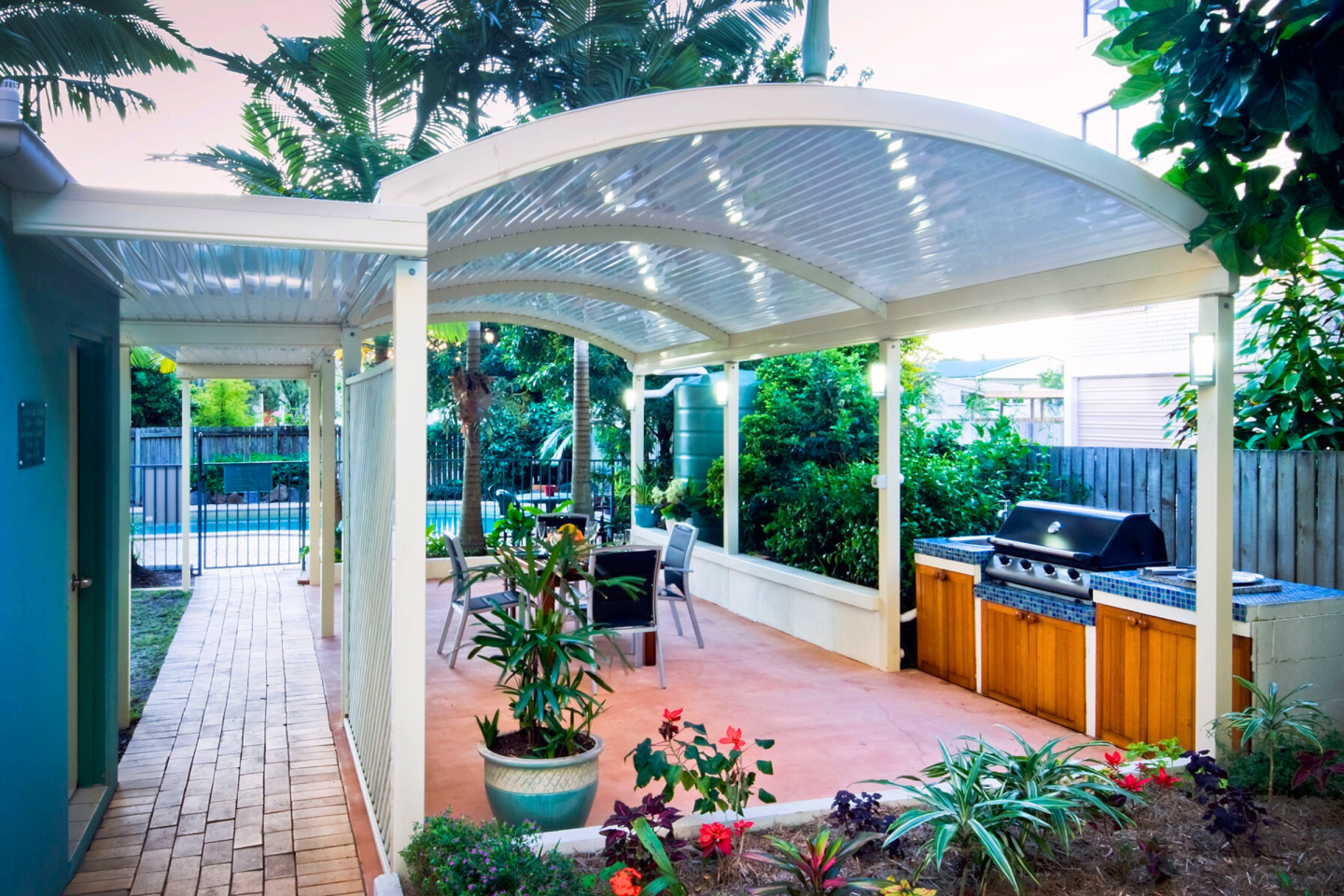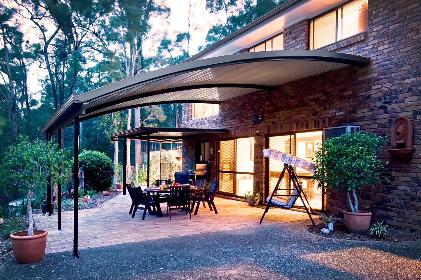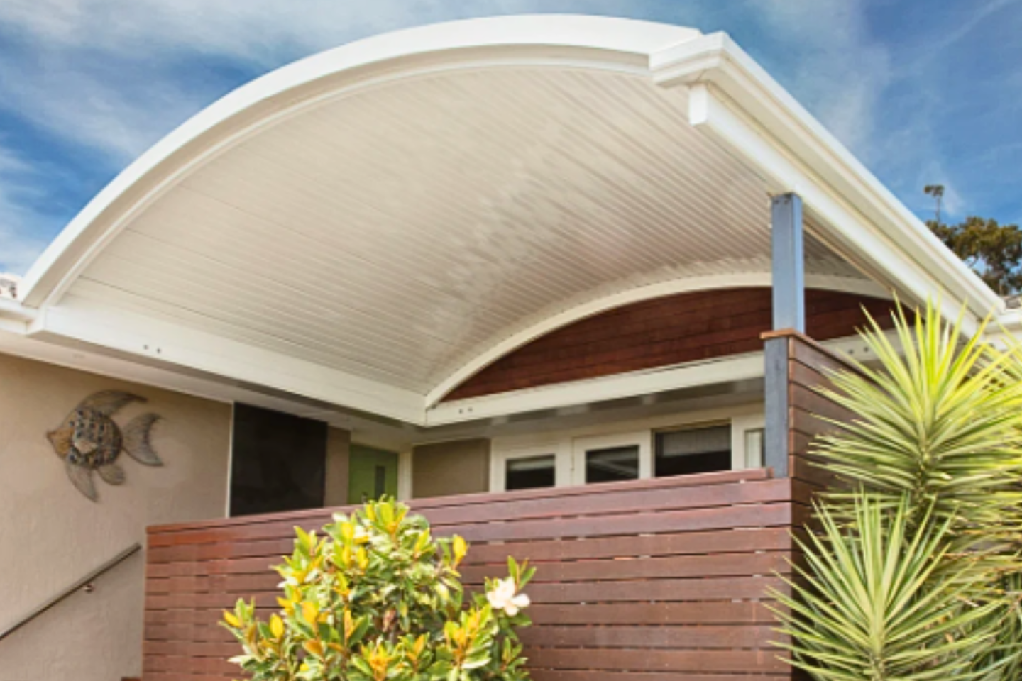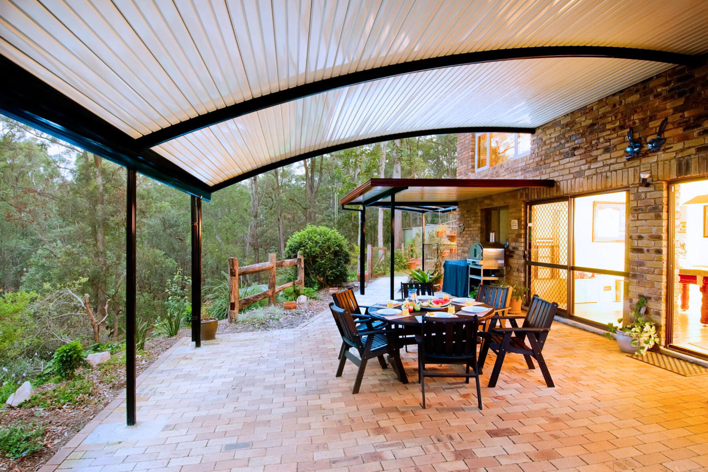 Looking for a sleek and modern design to add to your home? Transform your outdoor area with a Curved Roof Patio! Not only do they provide excellent ventilation, but they also offer a unique and contemporary aesthetic.